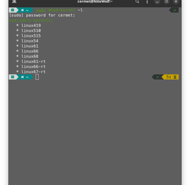 Finally, if there are any mismatched kernels, replace them. For example, at the time I ran this, the list of supported kernels skipped from 61 to 66: