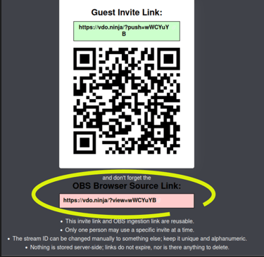 Return to your web browser which had the QR code, select the address for the "OBS Browser Source Link" to add it to your clipboard